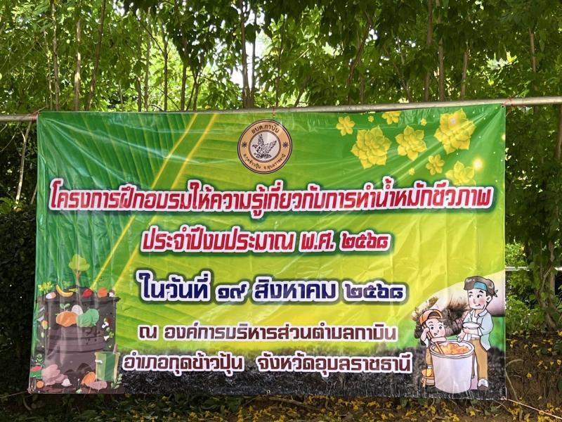 วันที่ ๑๙ สิงหาคม ๒๕๖๘ สำนักปลัดโดยงานพัฒนาชุมชน ได้จัดโครงการฝึกอบรมให้ความรู้เกี่ยวกับการทำน้ำหมักชีวภาพ ประจำปีงบประมาณพ.ศ ๒๕๖๘ โดยกลุ่มเป้าหมายคือประชาชนตำบลกาบินทั้ง ๑๔ หมู่บ้าน จำนวน ๕๐ คน ณ องค์การบริหารส่วนตำบลกาบิน อำเภอกุดข้าวปุ้น จังหวัดอุบลราชธานี