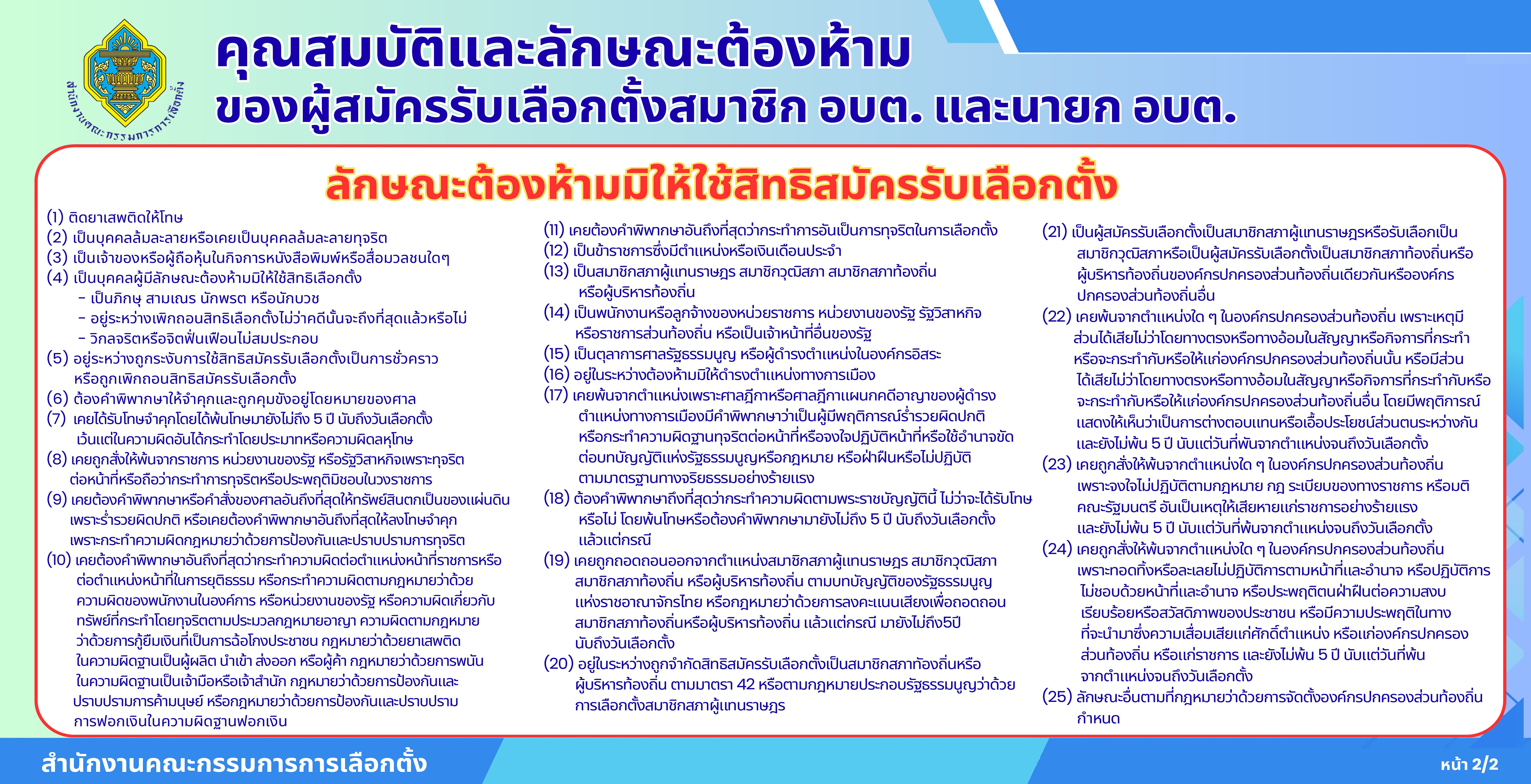 ประชาสัมพันธ์ คุณสมบัติและลักษณะต้องห้ามของผู้สมัครรับเลือกตั้งสมาชิก อบต. และนายก อบต.